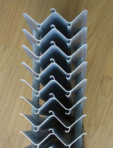 | 擋水板是中央空調(diào)末端裝置的一個重要部件,它與中央空調(diào)相配套,作汽水分離功能?晒┫盗衅贩N有以玻璃鋼、不銹鋼、鋁合金、鍍鋅板為材質(zhì)的波紋多棱擋水板和導(dǎo)流板。本產(chǎn)品適用紡織、化纖、冶金、機械、醫(yī)藥、電子、環(huán)保除塵、商場、賓館的中央空調(diào)器。 | |