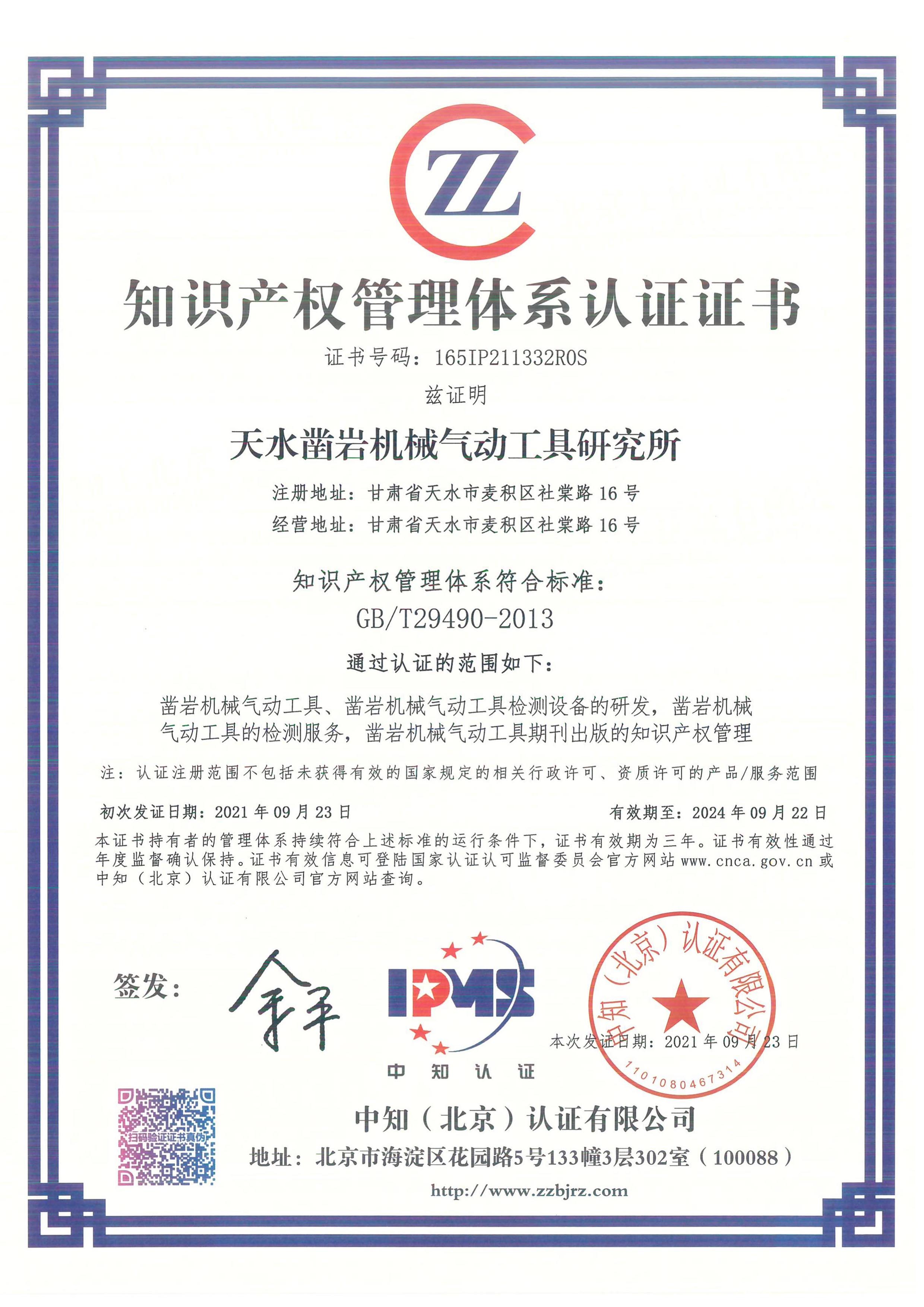 知識產(chǎn)權(quán)管理體系認(rèn)證證書