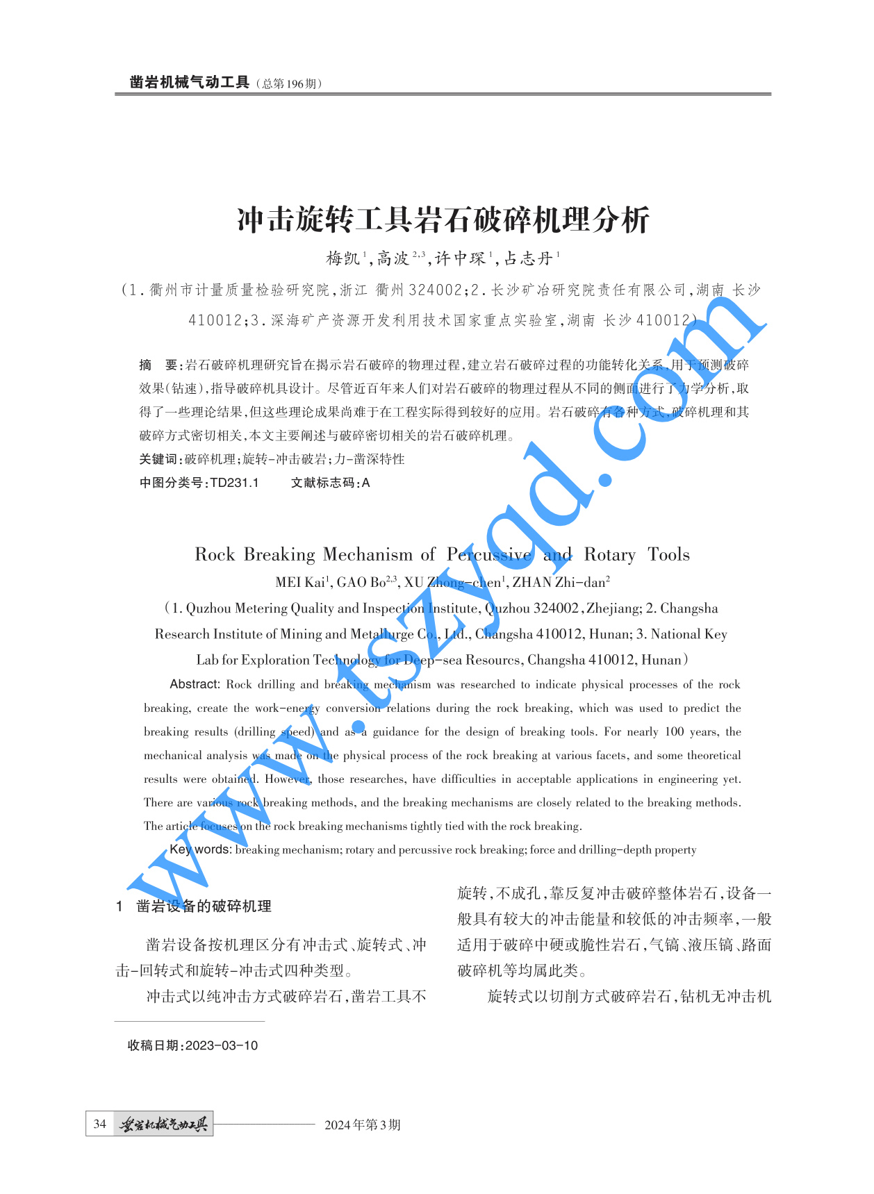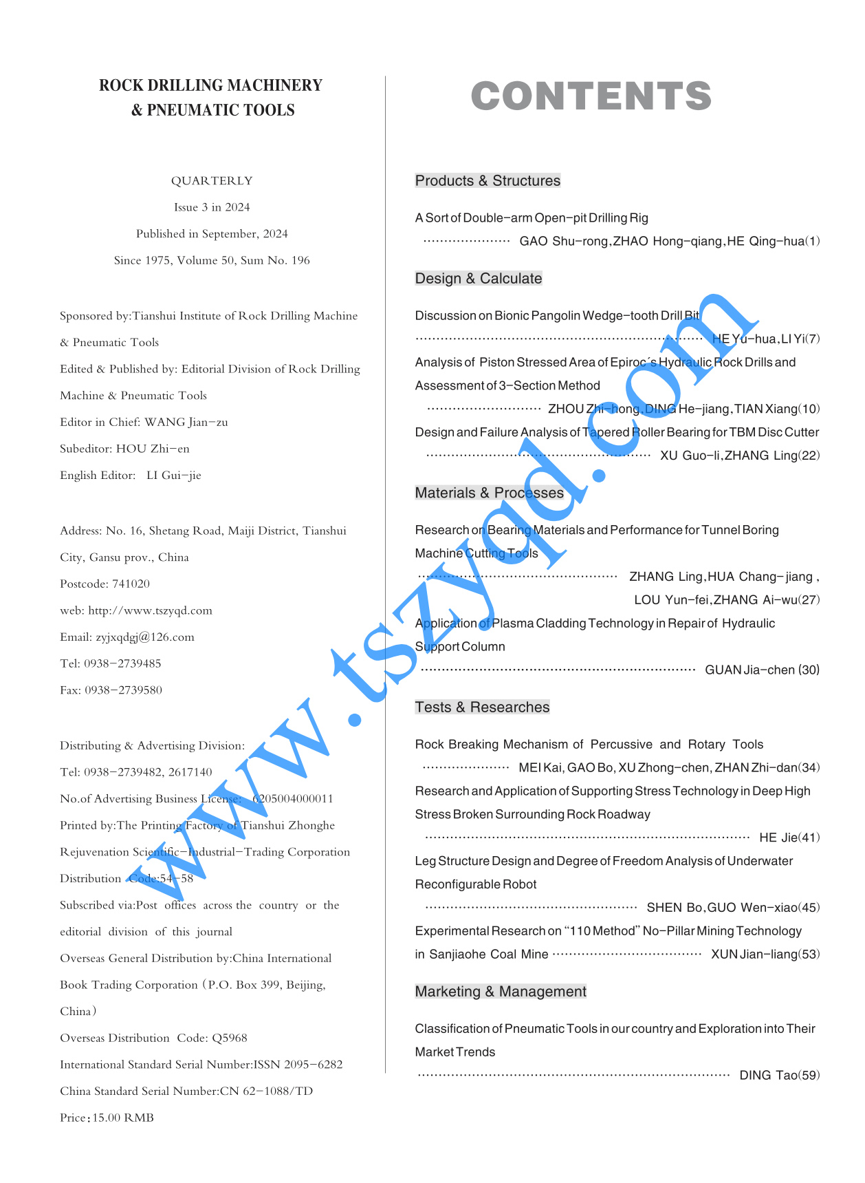 《鑿巖機(jī)械氣動工具》2024年第3期